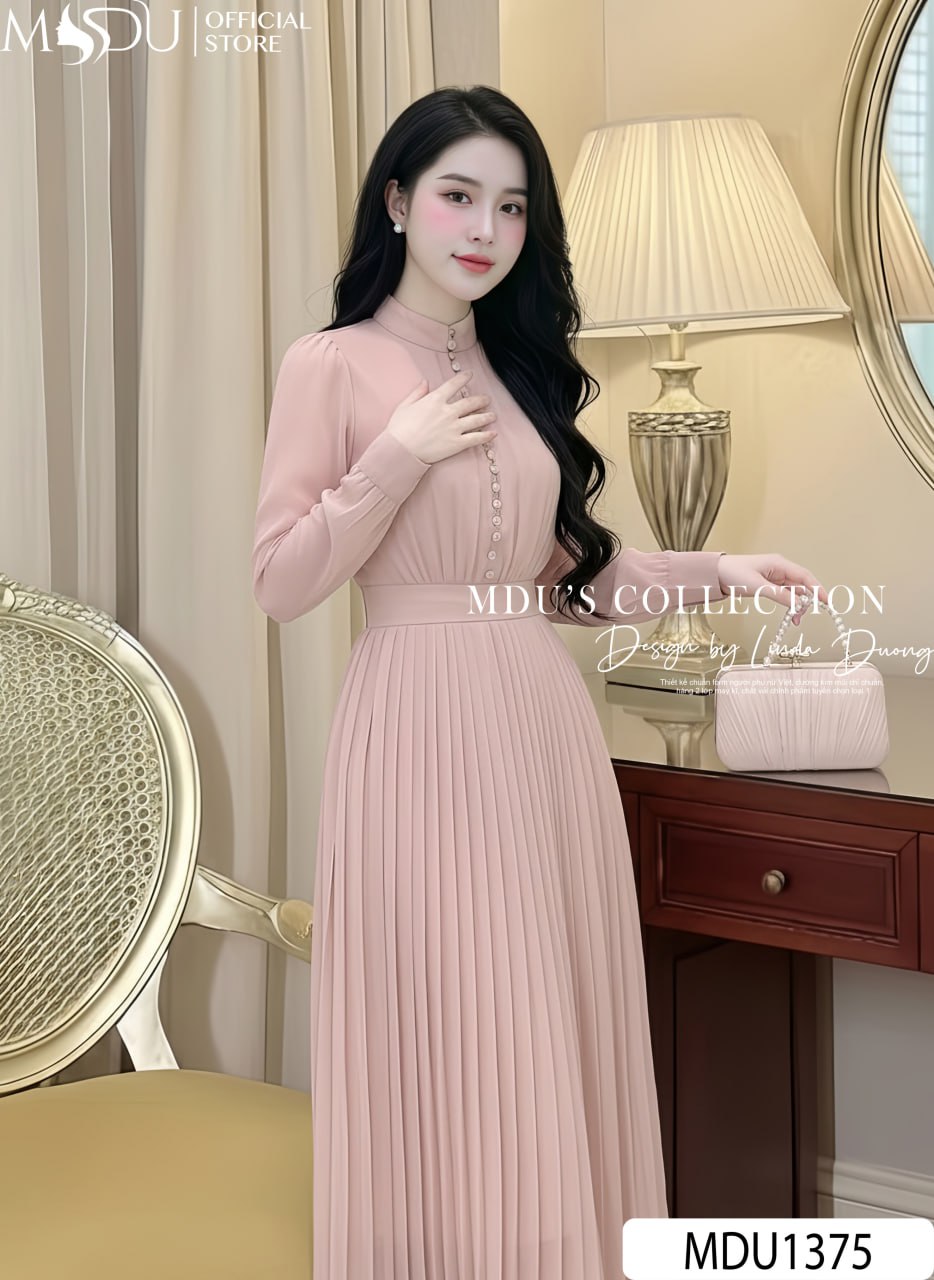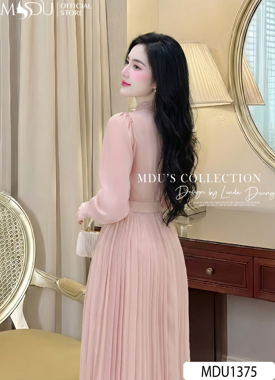 The MDU1375 is crafted from Imported Grade 1 Luminous Silk (Tơ óng chính phẩm), a premium textile known for its subtle, sophisticated shimmer when it catches the light. This high-end fabric offers a remarkably soft, silky hand-feel while maintaining a durable structure. For maximum comfort and a flawless finish, the dress is double-layered with 100% skin-safe lining and features meticulously concealed seams to prevent any skin irritation.