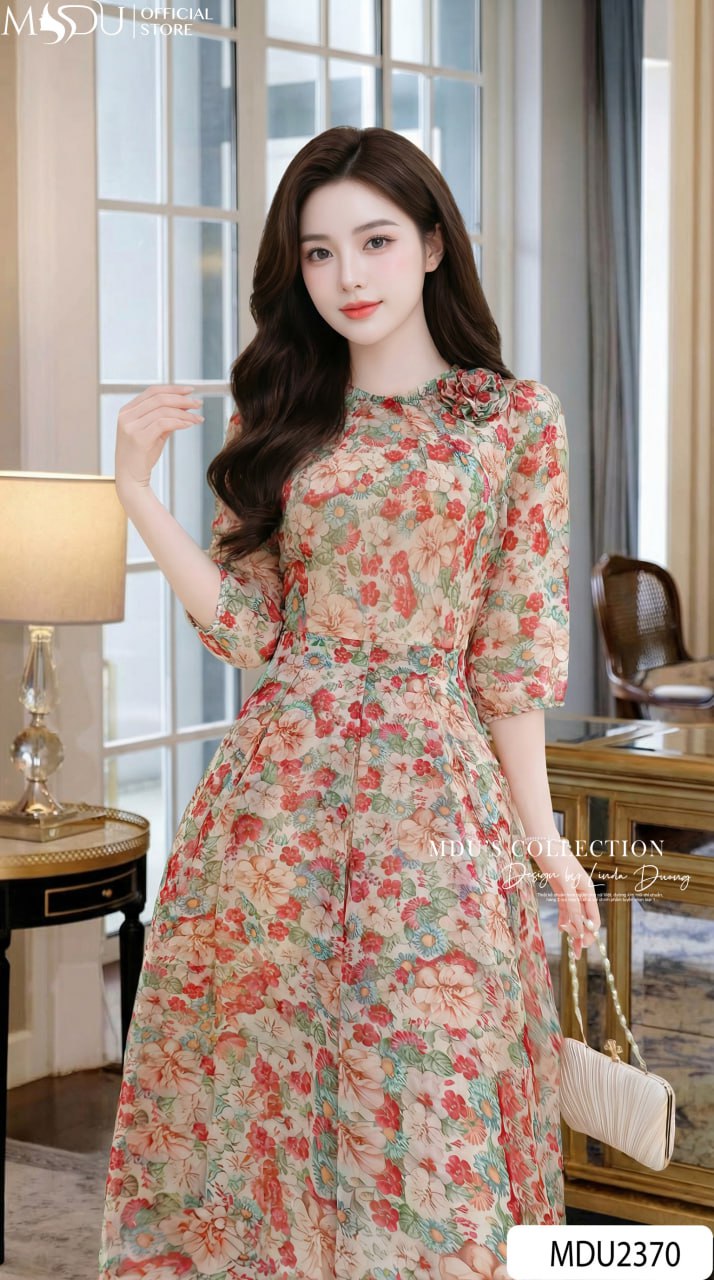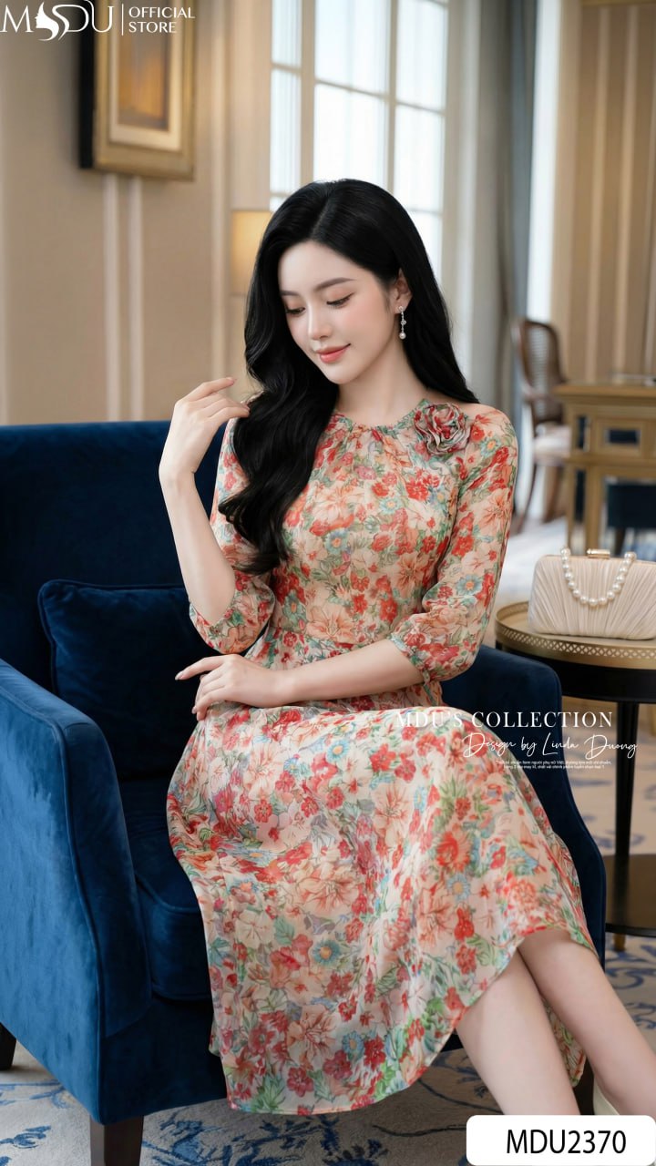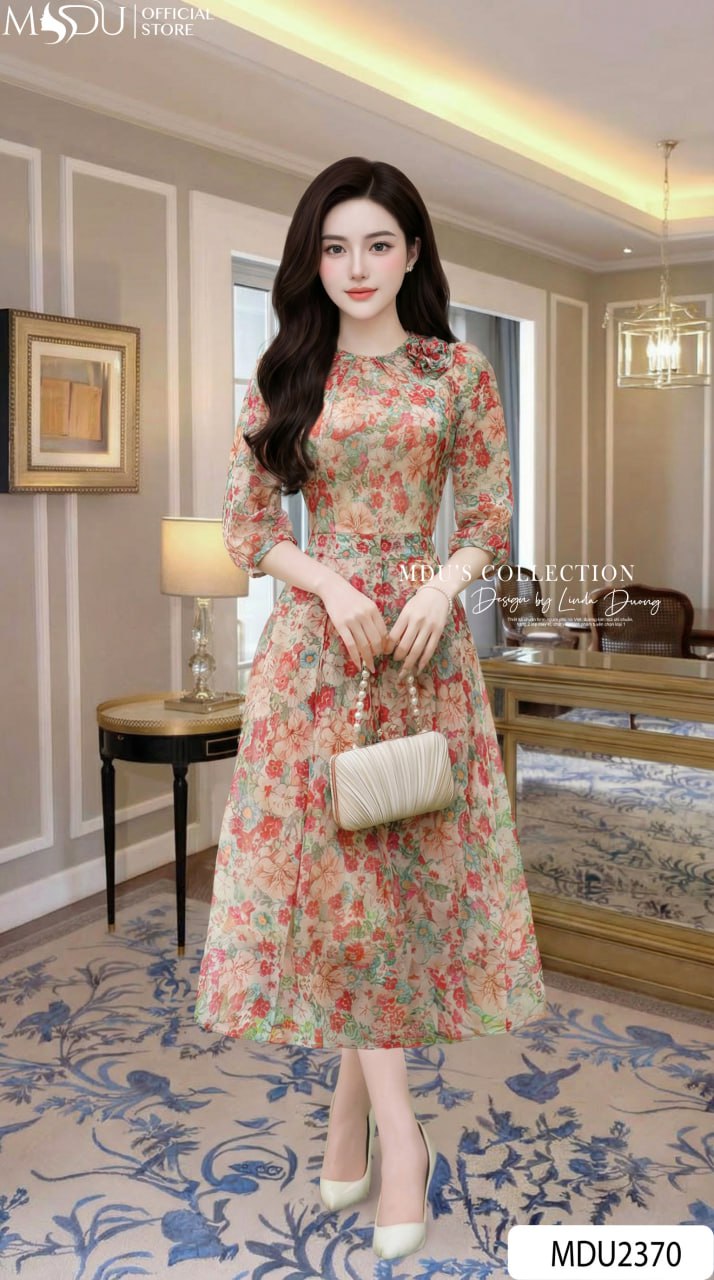 Experience effortless elegance with the MDU4172. Combining the soft, cooling touch of premium Korean Silk Tơ with a sophisticated off-shoulder design and vibrant florals, this double-layered dress offers a perfectly sculpted fit and high-end comfort for any social or professional setting.